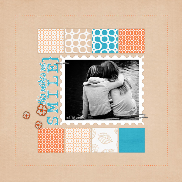 4. Visual Triangle: (the color blue) Placing items on my scrapbook page in a triangle allows the viewer's eyes to see the page as a whole rather than being distracted by one or two pieces on the page. A visual triangle helps the viewer's eye to travel around the page. A visual triangle can be created on a scrapbook layout using photos, embellishments, or event text such as your title, date, and journaling.